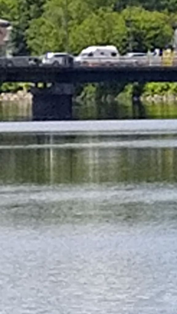 We wanted to try and find a moose, so we headed 20 miles due north to Rockwood, Maine. The signs all say population ” not many” and claim moose outnumber people 3 to 1. Guess what? We saw one moose eating grass on the side of the road. Awesome sight. We got turned around to take pictures but he had slipped into the woods. The only pictures we could get was his legs between the brush and trees. We then continued to drive the rural roads near Rockwood.