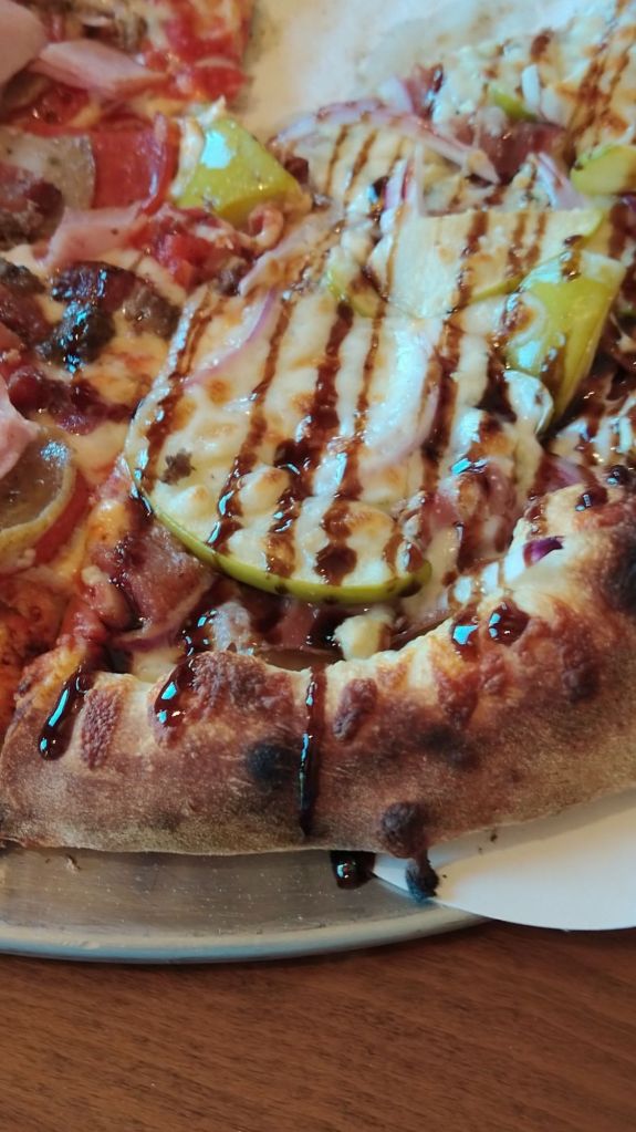 Trust me; this is a don’t miss. We asked about recommendations for lunch and Andy suggested a place down a dirt road; Knife Edge Pizza/ Brewery and resort. It was maybe the best and most unusual pizza I have ever had. The cook talked me into trying a half and half. So, we got half meats and the other half with his suggestion . He was not wrong! Prosciutto with blue cheese crumbles, thinly sliced red onion, and green apple slices. Topped with a balsamic drizzle. I wish I had gotten the whole pizza that way. In fact, I wish I had one now!