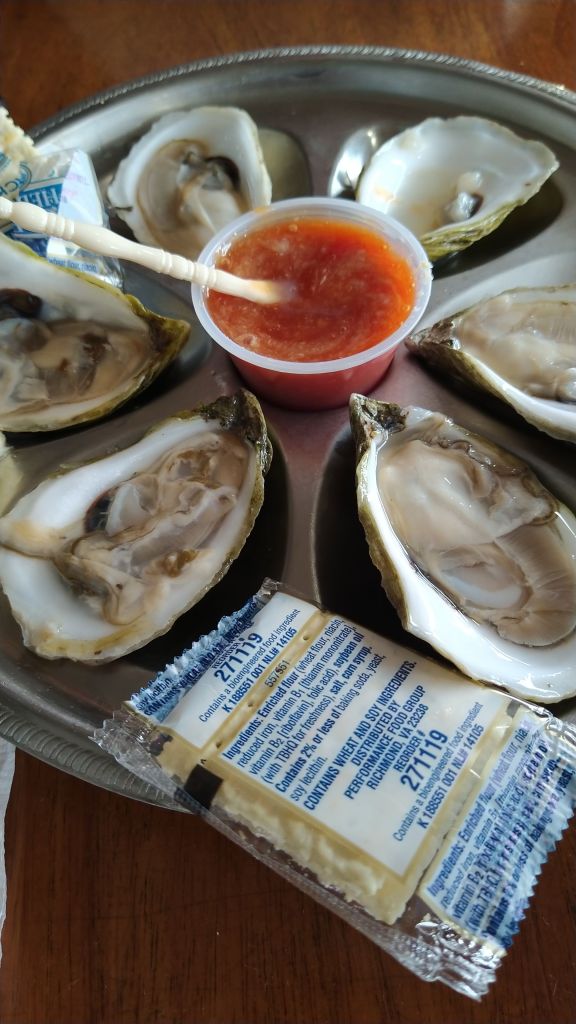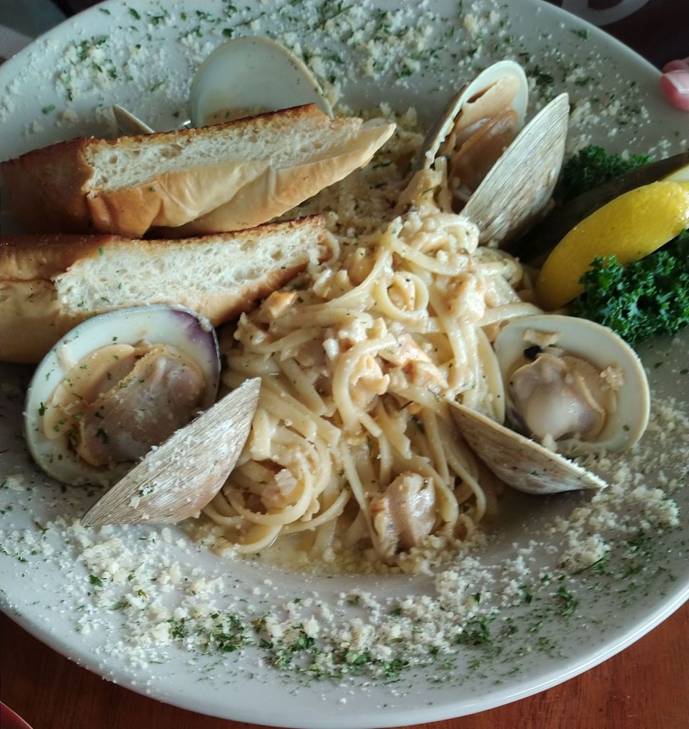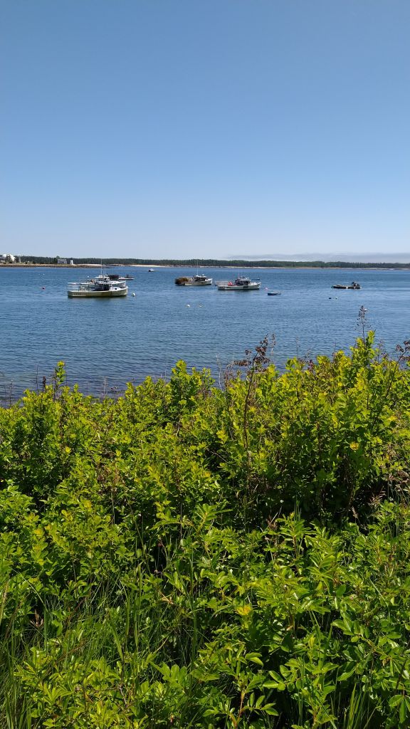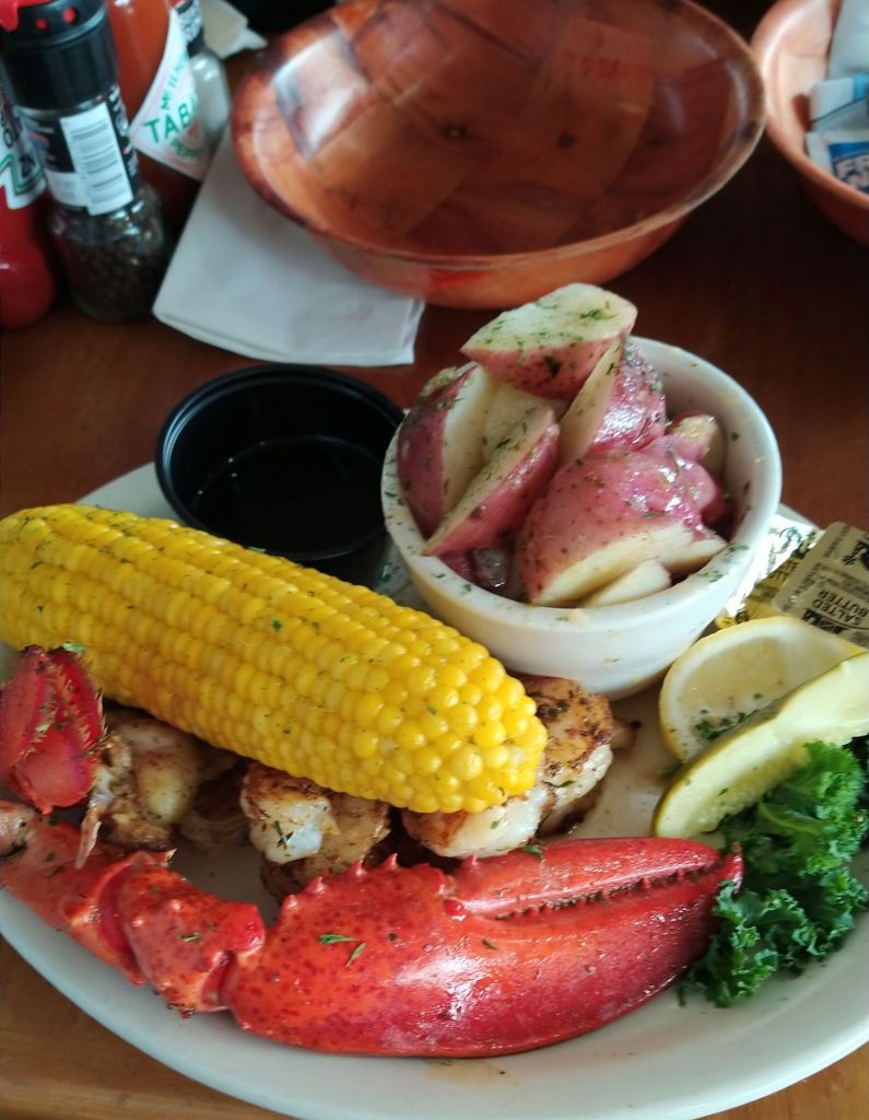 The day did not go as planned, but still a good day and one we enjoyed. This area is a great spot to just kick around in. The late afternoon brought dinner thoughts. I knew Stuman’s Lobster Pound was famous and supposed to be really good, but one of the desk clerks at the hotel had suggested Fish House Grill. Both restaurants overlooked the harbor, so we went with what the local recommended. Wow, it was outstanding. We got raw oysters. They were very good, but also very different from our southern gulf oysters. These had a little more briney taste but you could tell so very fresh. Darlene had the Clam Linguine and I opted for the Grill Plate; lobster tail, lobster claw, shrimp, scallops, oysters, potatoes and corn. We topped it off with coffees and homemade wild blueberry cobbler. This was the best meal of the entire trip and we had several good ones. As I stated before, I am a foodie and like trying local places. If you are in Bar Harbor, this is a must!
