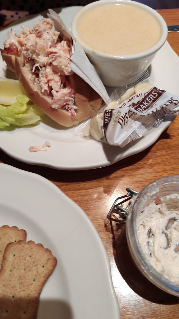 We got checked in and drove around town looking at a few of the sights and getting our bearings since we would be here the next four days. We went into downtown and stopped in The Thirsty Whale for a drink and the friendly bar tender talked us into eating there. Darlene got her third lobster roll of the trip and a cup of lobster bisque. I had smoked trout dip and a fried haddock sandwich with french fries. The meal was very good. We drove around the harbor looking at the night lights.