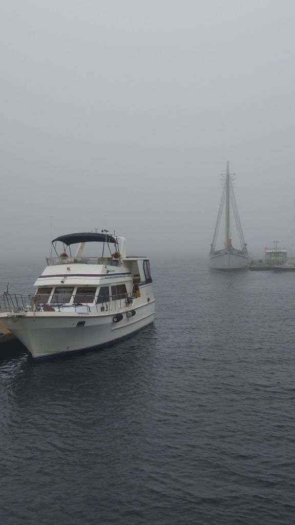 The next morning was a chill day as we had been kind of on the road for the last three days. So we slept late and were ready for the whale watching tour we had reserved for that afternoon. However neither us nor the company controls the weather. Our trip was cancelled due to dense fog at sea. We would not have been able to see anything anyway. So they rescheduled us for Monday morning. That left us the afternoon to walk around the docks and the town across from them. Bar Harbor is very clean and the people take a lot of pride in their community. We visited several unique shops and watched the boats in and around the harbor