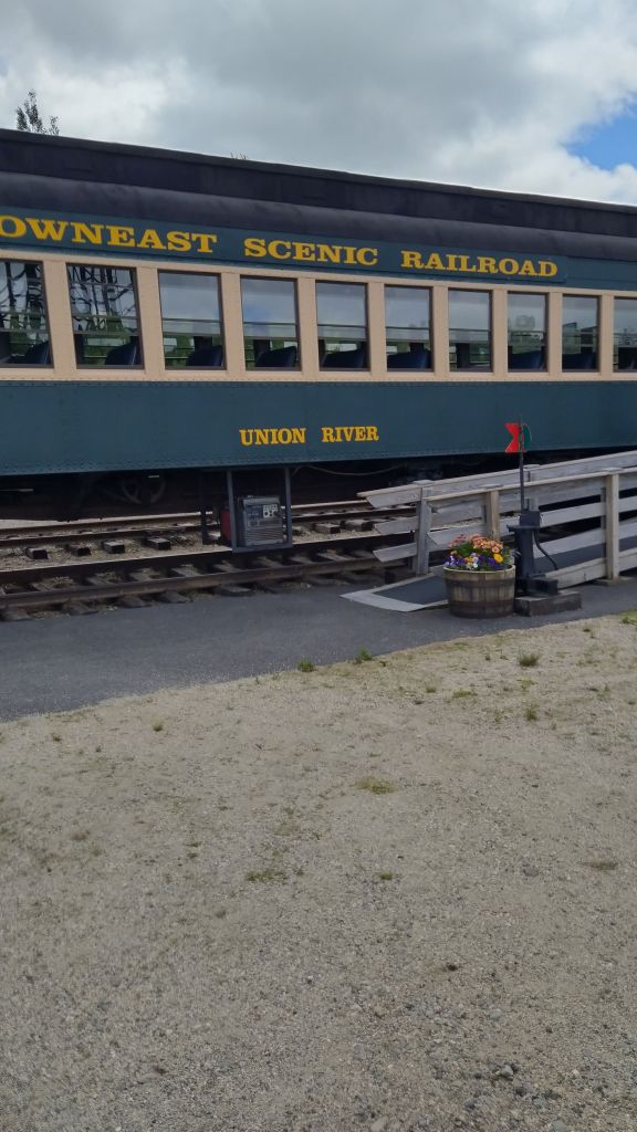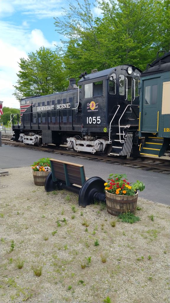 The next day we drove 19 miles to Ellsworth, Maine which is a small, quaint town known as the rail hub to Bar Harbor back in the 1930’s thru 1950’s. We took a ride on The Downeast Scenic Railroad. It is a 1953 engine and crosses the Union River with a look at the Union River Wetlands. It was very interesting and inexpensive ( $18 each in June of 2023). The ride lasted about an hour and forty five minutes. I learned about the “wye.” It is a way to turn an engine 180 degrees without ever uncoupling it from the train. We saw many deer, squirrels, and rabbits along the way. When we crossed the wetlands, we saw many Osprey and Eagle nests.