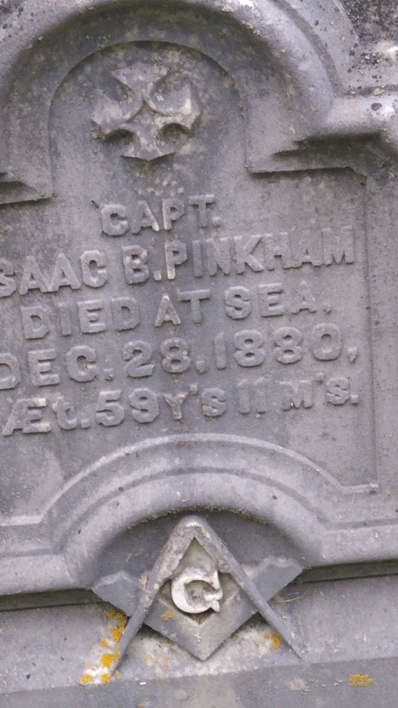 We left Wiscasset, Maine and headed toward Freeport; our final night’s stay. Coming into the town, we noticed a very old and somewhat historical cemetery; some of the graves dating back to the early and mid 1800’s. One very interesting grave site, Captain Issac B. Pinkham, stated died at sea December 28, 1880.