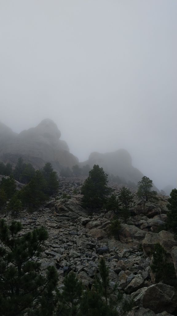 We left the museum and the fog was not as dense, but still not a clear view. We walked part of the presidential trail. It is a concrete walkway around the base of the mountain. There is Lakota, Nakota, and Dakota artifacts, tents, and stories on the way. These are all Sioux Indian tribes. Following the walkway on, you can see side views of Washington and Lincoln.