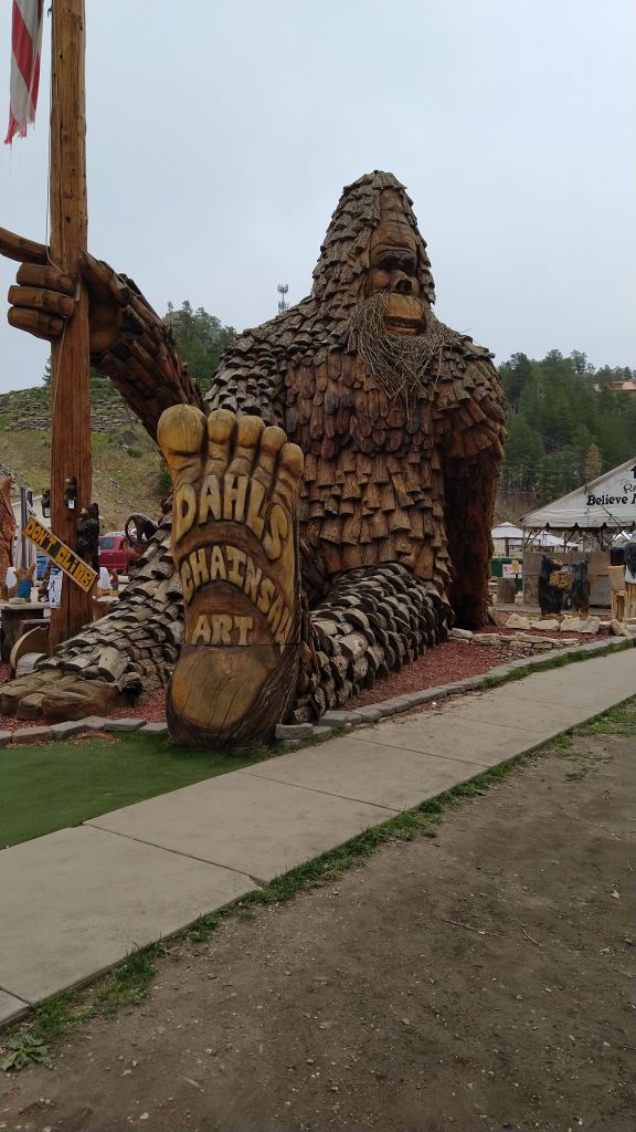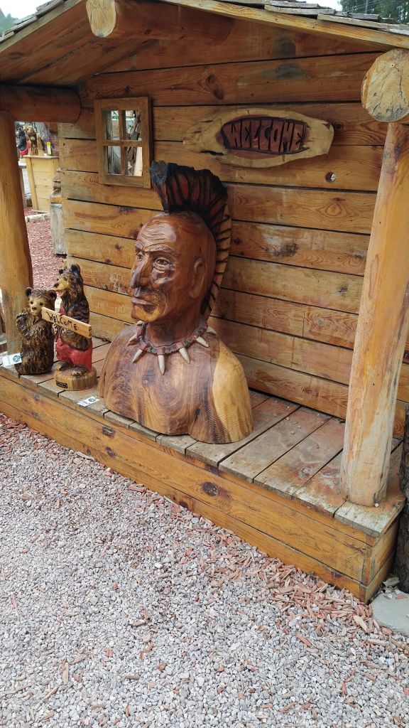 We still had a lot of afternoon left so took in what the local area of Keystone had to offer. Turns out this small town is full of old historical sights and many interesting things to see. We saw an old school house built in 1899 that is now a museum. We looked at an old ice house and old miner cabins that had been preserved. We browsed at Dahl’s Chainsaw Art. They have some of the biggest carvings I have seen. It takes a lot of skill and ladders to carve works this big. The most unusual and unique things we saw was Halley’s General Store. It has been open at the same location since 1880. It was originally called Keystone Trading Post. This place had a little bit of everything. My age group will see so many items in there that todays generation would have no idea what these things were. The store even had a small neighborhood bar. Darlene and I sat with the locals and chatted; some very nice and interesting people.