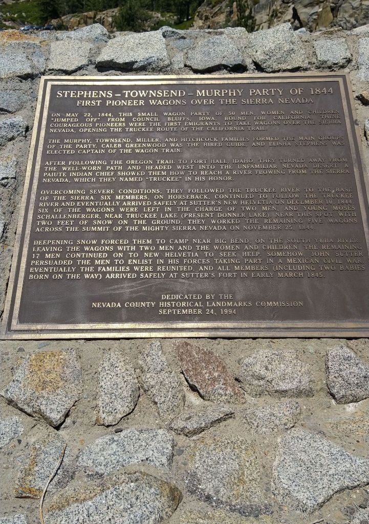I never knew there was a wagon train prior to the Donner party. In fact, 2 years prior. The Stephens, Townsend, Murphy train. I guess the pass and lake were not named for them because nothing tragic or bizarre happened to them.