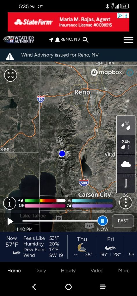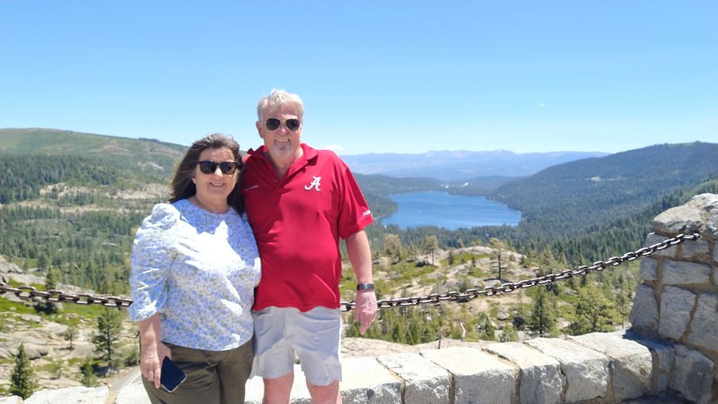 We left the lake and headed back to Reno via Mount Rose Summit. This is a peak of 9700 feet in elevation. The temperature was a balmy 57 degrees with 20% humidity which was a relief for this couple from Alabama where it was in the 90’s with 85% humidity. The scenery at the summit was pretty and provided a view of Lake Tahoe in the distance below