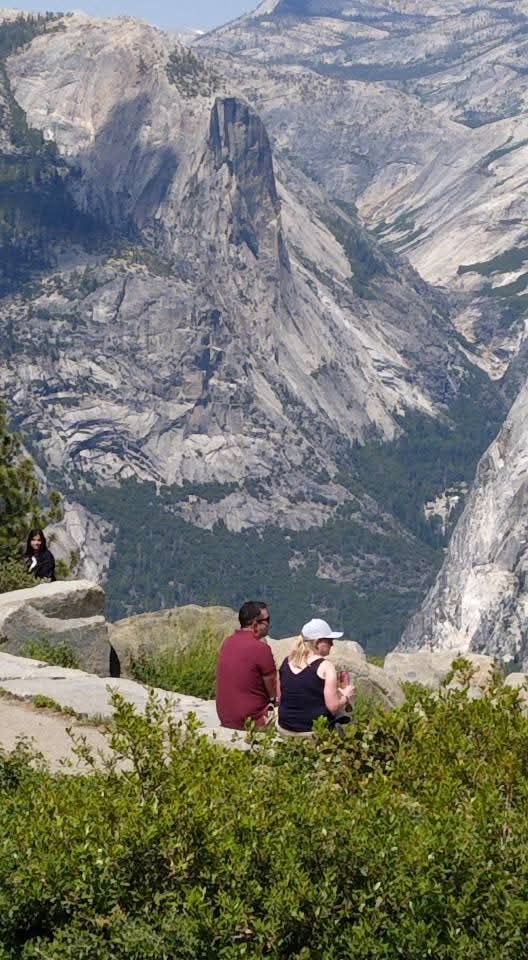 We got into Yosemite Valley and saw El Capitan, Half Dome, Bridalveil Falls, and Yellowstone Falls. The scenery is beautiful and majestic.