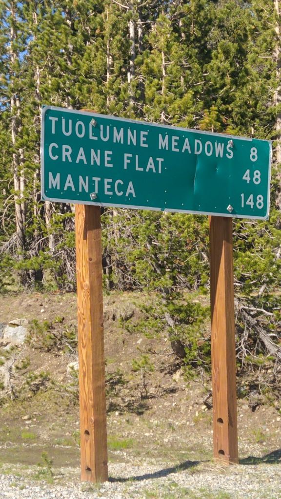 The entrance to Yosemite National Park is only 8 miles further to Toulumne Meadows ( pronounced To All Me Meadows.) We entered the park there and it was so easy. We have the lifetime pass, so all we did was show them that pass and our reservation, and we were in. Yosemite is one of the parks that you must make a reservation for because they control the number of visitors per day. I made our reservation back in April. The cost was $2.00. The entrance fee at any National Park is $35. Since we are traveling more and seeing more, the lifetime pass and one time fee of $90 is well worth it. Toulumne Meadows is the highest mountain meadow in the United States and is just beyond the entrance. There is a small stand of Giant Redwood Trees down a 3/4 mile trail that also rises 500 feet in elevation. We decided the length wasn’t bad but was afraid the knees wouldn’t like the climb! In all, we drove 150 miles through the park and exited in Manteca, California.